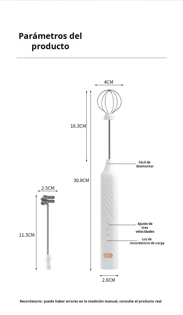 Espumador de leche, batidor de huevos, espumador de leche inalámbrico, espumador de leche para café,